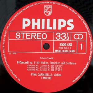 中古レコード/古楽 ヴィヴァルディ:6つのヴァイオリン協奏曲集 op.6 9500438 カルミレッリ(Vn) イ・ムジチ合奏団 2,750円(税込) 蘭PHILIPS 9500 438 STEREO 中古LP 盤質A/ジャケットA 赤/白文字 レーベル ORIGINAL LABEL