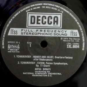 中古レコード/指揮者/オーケストラ チャイコフスキー:管弦楽曲集 SXL6694 ドラティ/ナショナルSO 3,300円(税込) 英DECCA SXL 6694 STEREO 中古LP 盤質A/ジャケットA 小DECCA レーベル <収録曲目> 幻想序曲「ロメオとジュリエット」 交響詩「宿命」op.77 交響幻想曲「テンペスト」op.18 ORIGINAL LABEL