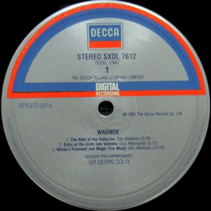 中古レコード/指揮者/オーケストラ/デジタル録音 ワーグナー:楽劇「ニーベルングの指環」管弦楽曲集 SXDL7612 ショルティ/ウィーンPO SOLD OUT 英DECCA SXDL 7612 STEREO 中古LP 盤質A/ジャケットA デジタル録音 オランダ・プレス <収録曲目> ワルキューレの騎行 神々のワルハラ入城 ヴォータンの告別と魔の炎の音楽 森のささやき ジークフリートの葬送行進曲 神々の黄昏~終幕の場 ORIGINAL LABEL