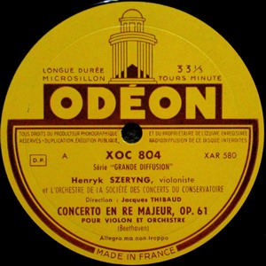 中古レコード/弦楽器奏者 ベートーヴェン:ヴァイオリン協奏曲 XOC804 ヘンリク・シェリング(Vn) ティボー/パリ音楽院O 5,500円(税込) 仏ODEON XOC 804 MONO 中古LP 盤質A/ジャケットA 黄/茶文字 レーベル 2nd ジャケット 2nd label