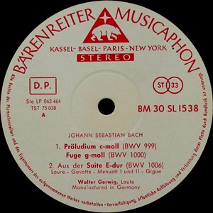 バッハ:リュート作品集  BM30SL1538