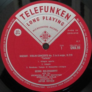 中古レコード/弦楽器奏者 モーツァルト:ヴァイオリン協奏曲No.5、シューマン:ヴァイオリン協奏曲 クーレンカンプ GMA99 クーレンカンプ(Vn) ローター/ベルリン・ドイツ・オペラO、イッセルシュテット/ベルリンPO 5,500円(税込) 英TELEFUNKEN GMA 99 MONO 中古LP 盤質A/ジャケットA あずき/銀V字 レーベル ゲオルグ・クーレンカンプ(Vn) モーツァルト:ヴァイオリン協奏曲No.5 イ長調 K.219 ローター/ベルリン・ドイツ・オペラ管弦楽団 1939年録音 シューマン:ヴァイオリン協奏曲 ニ短調 イッセルシュテット/ベルリンPO 1937年録音 TELEFUNKEN録音/英DECCAプレス UK ORIGINAL LABEL