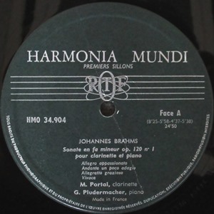 中古レコード/器楽奏者/室内楽 ブラームス:クラリネット・ソナタNo.1&No.2 HM30.904 ミシェル・ポルタル(cl) ジョルジュ・プリュデルマシェ(P) 5,500円(税込) 仏Harmonia-Mundi HM 30.904 STEREO 中古LP 盤質A/ジャケットA 深みどり/銀文字 ORTFフランス放送スタジオ106録音 ORIGINAL LABEL