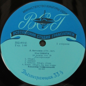ベートーヴェン:ピアノソナタNo.15、他  ソフロニツキー  33D09145-6