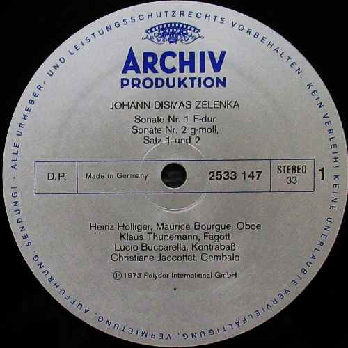 中古レコード/古楽 ゼレンカ(1679-1745):6つのトリオ・ソナタ集 2708027 ホリガー、ガブリロフ、ジャコテ、他 4,400円(税込) 独ARCHIV 2708 027 (2LP) STEREO 中古LP 盤質A/ジャケットA 銀 レーベル ハインツ・ホリガー、モーリス・ブルグ(ob) サチコ・ガヴリロフ(Vn) クラウス・トゥーネマン(fg) クリスティアーヌ・ジャコテ(cem) ルチオ・ブカレッラ(コントラバス) ORIGINAL LABEL