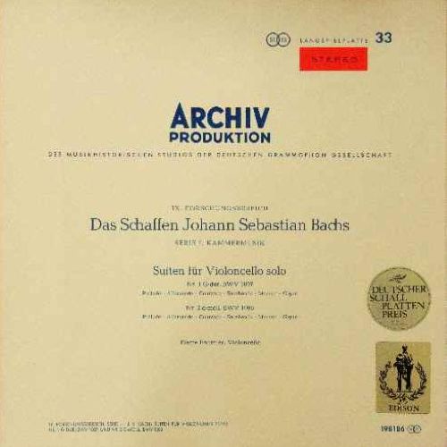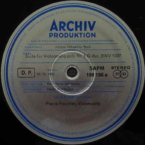 中古レコード/弦楽器奏者 バッハ:無伴奏チェロ組曲 全6曲 フルニエ SAPM198186/8 ピエール・フルニエ(Vc) 44,000円(税込) 独ARCHIV SAPM 198 186/88 (3LP) STEREO 中古LP 盤質A/ジャケットA 艶銀/青二本線 レーベル *初版のレーベルは12時の位置にSTEREOの表記のあるタイプですが、プレス枚数が非常に少ないため個別ジャケットで初版を揃えるのは非常に困難です。 三方見開き カルテ付 2nd label バラ3枚セット